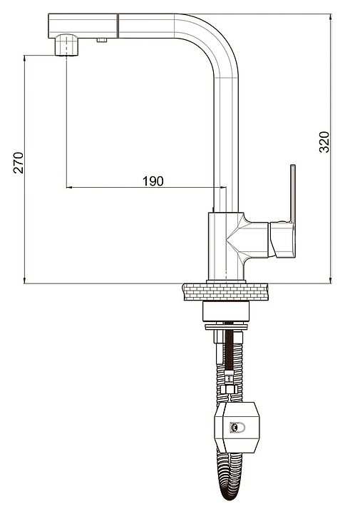 Смеситель для кухни GPD Pedra MES160 с выдвижной лейкой