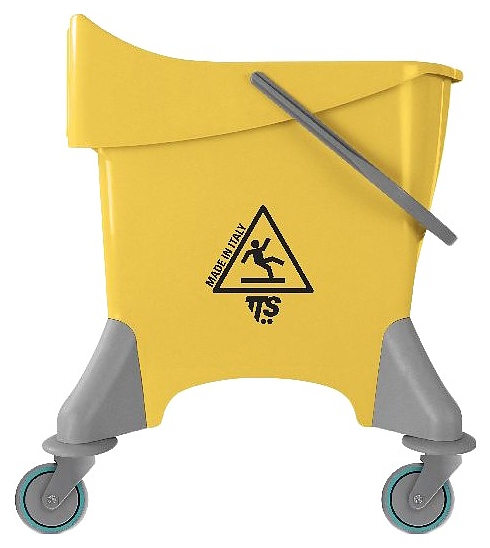 Уборочная тележка TTS Pile предназначена для профессиональной влажной уборки в офисах, торговых центрах, гостиницах, на предприятиях общественного питания и других местах массового пребывания малой и средней площадей. Модель оснащена емкостью со складной ручкой, 4 колесами и навесным устройством для отжима с 2 интегрированными ручками и держателем для швабры. Емкость, ручка и корпус отжима выполнены из ударопрочного полипропилена, рукоятка отжима – из алюминия с пластиковой накладкой. Особенности: