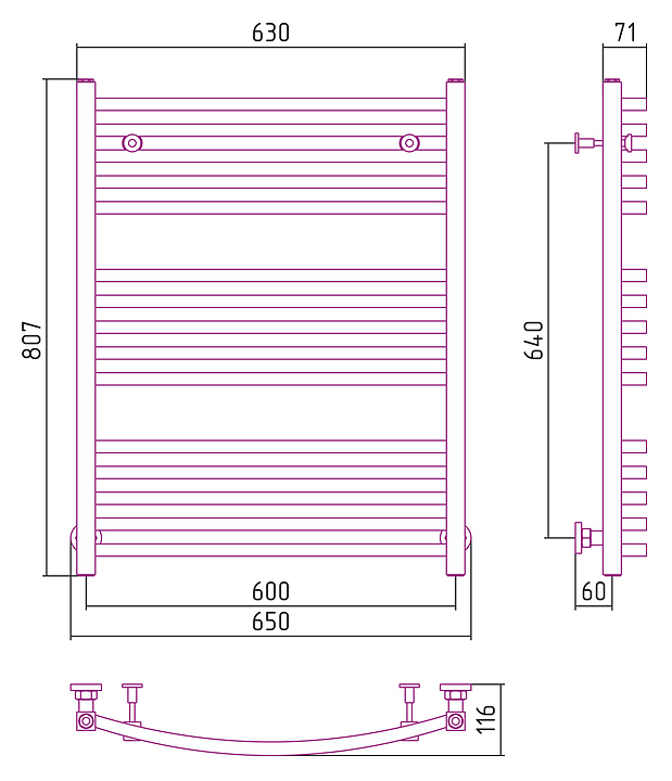 Полотенцесушитель водяной Сунержа Аркус 80x60 см сатин