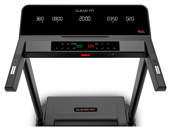 Беговая дорожка CLEAR FIT LifeCardio LT 40 используется для тренировок в домашних условиях. Модель оснащена русифицированной консолью, сенсорными датчиками измерения пульса, газовым доводчиком EasyDecline™ для облегчения процесса складывания, колонками и 2 колесами. Корпус модели выполнен из ударопрочного ABS-пластика. В комплект поставки входят силиконовая смазка, ключ безопасности, соединительный кабель Jack 3.5 мм, ключ для регулировки бегового полотна и набор ключей для сборки. Особенности: