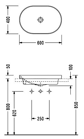 Раковина врезная на столешницу SEREL SAPPHIRE SP33 60х40х15 см, фарфор, белая