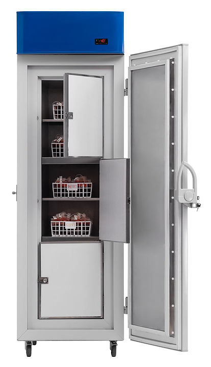 Медицинский морозильник POZIS ММШ-350 предназначен для хранения замороженной плазмы крови, ферментов и биологических образцов на станциях перливания крови, в лабораториях научно-исследовательских институтов, ветеринарных клиниках и других учреждениях здравоохранения. Модель оснащена панелью управления с кнопками и экраном, 1 общей дверью с замком, 3 внутренними дверями, 5 металлическими полками и 4 колесами. В комплект поставки входят 2 ключа от двери. Особенности: