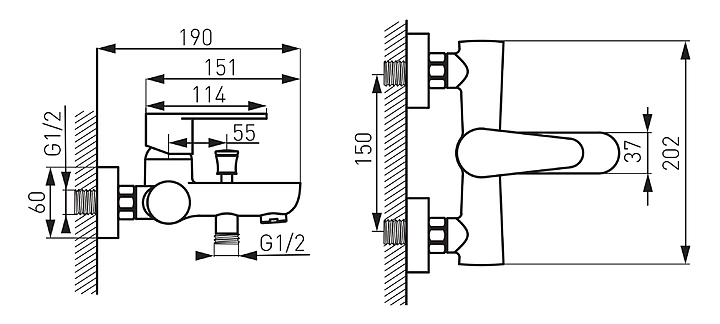 Смеситель для ванны настенный FERRO ALGEO BAG1BL чёрный
