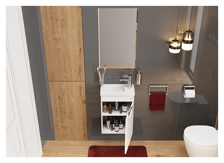 Тумба под раковину Onika КОМО 40.01 дополнит интерьер компактной ванной комнаты. Благодаря подвесной конструкции модель не занимает много места и облегчает уборку. Модель оснащена распашной дверцей с системой плавного закрывания. Изделие выполнено из МДФ в пленке, устойчивой к механическим воздействиям, перепадам температур и высокой влажности. Тумба используется вместе с раковиной Cersanit COMO 40. В комплект поставки входят подвесы для крепления. Дополнительные характеристики: