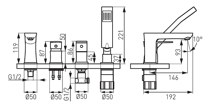 Смеситель на борт ванны FERRO ALGEO SQUARE BAQ11A хром