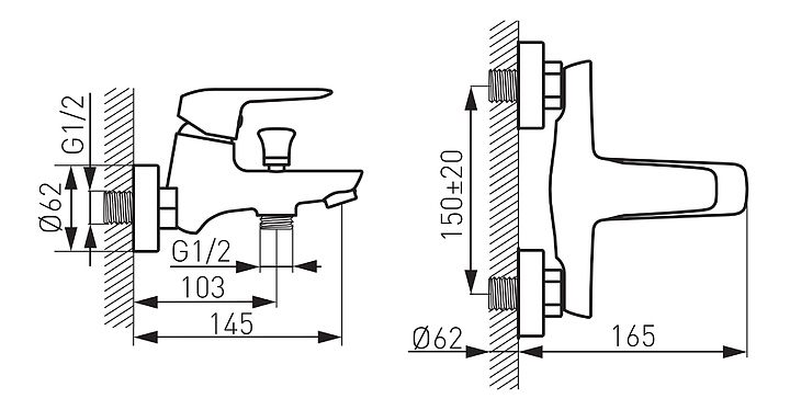 Смеситель для ванны настенный FERRO DIJON BDJ1 хром