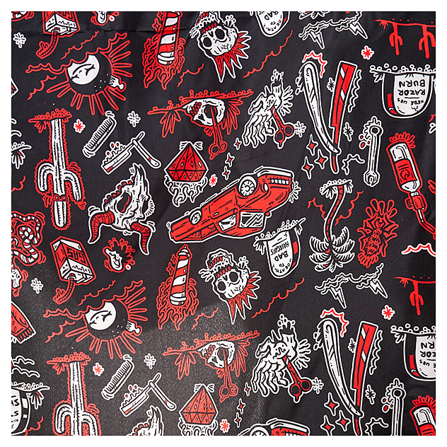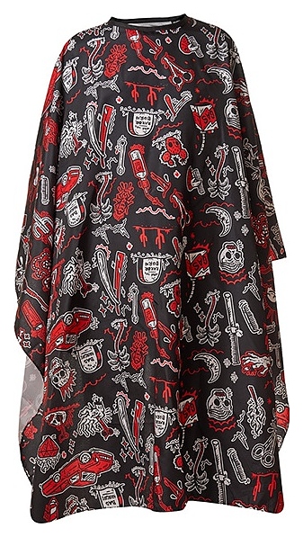 Накидка Harizma Barber's Horror используется в парикмахерских, барбершопах, салонах красоты и домашних условиях для изоляции одежды клиента от волос, воды и косметических средств в процессе стрижки и других процедур. Модель оснащена фиксирующей липучкой на воротнике и нисходящей длинной полой. Модель выполнена из легкого водоотталкивающего синтетического материала. Особенности: