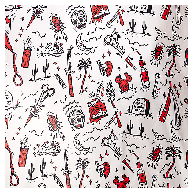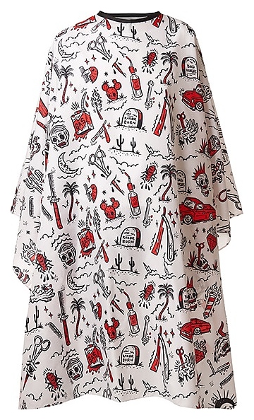 Накидка Harizma Barber's Horror используется в парикмахерских, барбершопах, салонах красоты и домашних условиях для изоляции одежды клиента от волос, воды и косметических средств в процессе стрижки и других процедур. Модель оснащена фиксирующей липучкой на воротнике и нисходящей длинной полой. Модель выполнена из легкого водоотталкивающего синтетического материала. Особенности: