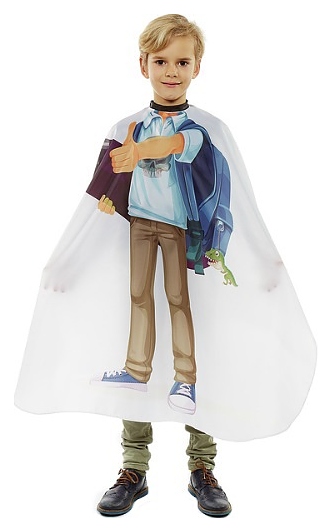 Накидка Sibel SKATERBOY используется в парикмахерских, барбершопах, салонах красоты и домашних условиях для изоляции одежды и кожи ребенка от волос, воды и косметических средств в процессе стрижки и других процедур. Модель оснащена фиксирующей липучкой на воротнике и нисходящей длинной полой. Модель выполнена из легкого водоотталкивающего синтетического материала. Особенности: