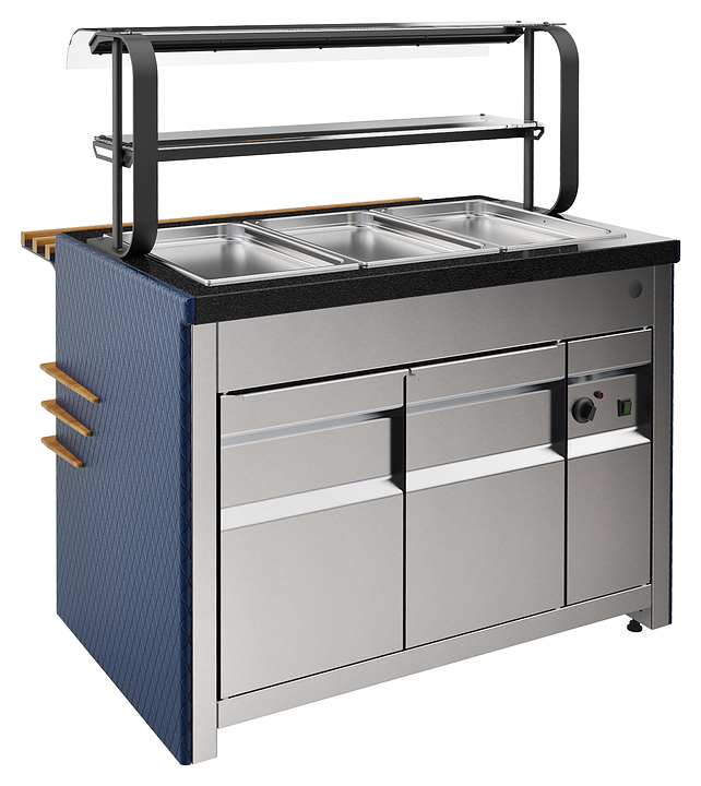 Мармит Refettorio Case RM23AS используется в составе линии раздачи Case на предприятиях общественного питания и торговли для поддержания в горячем состоянии и последующей раздачи вторых блюд. Модель оснащена нишами для размещения гастроемкостей. Столешница выполнена из кварцевого агломерата, фасад - из ламинированного МДФ. Гастроемкости в комплект поставки не входят и приобретаются отдельно. Особенности: