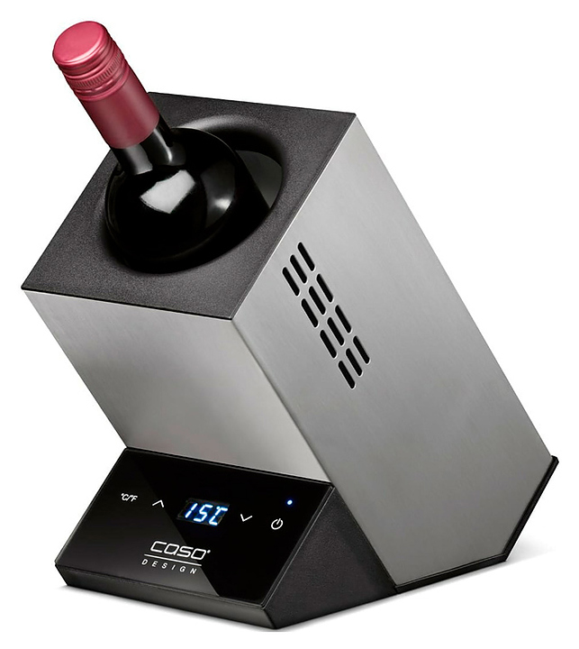 Охладитель бутылок CASO WineCase One Inox предназначен для охлаждения, хранения и демонстрации бутилированного вина в частных домах, квартирах, отелях и офисах. Модель оснащена сенсорной панелью управления c дисплеем, на котором отображается заданная температура. Корпус выполнен из нержавеющей стали. Особенности: