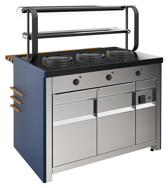 Мармит Refettorio Case RM12DS используется в составе линии раздачи Case на предприятиях общественного питания и торговли для поддержания в горячем состоянии и последующей раздачи первых блюд. Модель оснащена 3 встроенными электросупницами. Столешница выполнена из кварцевого агломерата, фасад - из ламинированного МДФ. Особенности: