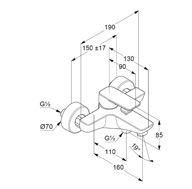 Смеситель для ванны настенный KLUDI Pure and Style 406810575 хром