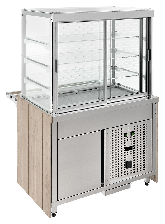 Холодильная витрина Refettorio Capital RC21AS используется в составе линии раздачи Capital на предприятиях общественного питания и торговли для кратковременного хранения, демонстрации и раздачи холодных напитков, салатов, кисломолочных продуктов, кондитерских изделий, десертов и других блюд, требующих хранения в охлажденном состоянии. Модель оснащена 3 вместительными внутренними полками. Столешница выполнена из кварцевого агломерата, фасад - из ламинированного МДФ.