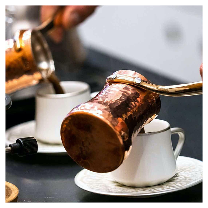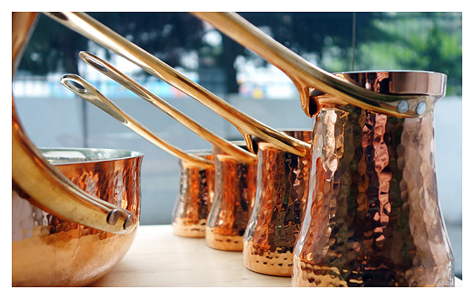 Джезва SOY С1GL используется для приготовления заварного кофе на газовых и электрических плитах, портативных горелках, песке или углях в кафе, ресторанах, квартирах и частных домах. Изделие оснащено расположенной под углом литой ручкой и носиком. Бесшовная кованная емкость выполнена из листа меди толщиной 1,5 мм, ручка - из бронзы, клепки крепления ручки - из меди. Особенности: