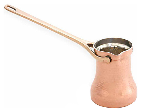 Джезва SOY С4GL используется для приготовления заварного кофе на газовых и электрических плитах, портативных горелках, песке или углях в кафе, ресторанах, квартирах и частных домах. Изделие оснащено расположенной под углом литой ручкой и носиком. Бесшовная кованная емкость выполнена из листа меди толщиной 1,5 мм, ручка - из бронзы, клепки крепления ручки - из меди. Особенности:
