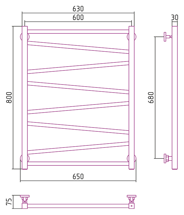 Полотенцесушитель водяной Сунержа Сирокко 80x60 см сатин