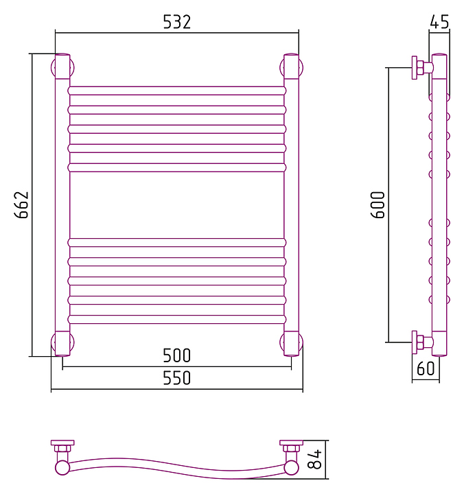 Водяной полотенцесушитель Сунержа Флюид + предназначен для подогрева и сушки полотенец, а также для обогрева ванных комнат в квартирах, коттеджах и частных домах. Модель оснащена 10 перекладинами для удобного использования. Изделие выполнено из нержавеющей стали AISI 304 L, отличающейся прочностью, долговечностью и устойчивостью к перепадам температур. Комплект поставки: