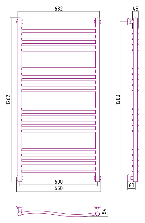 Полотенцесушитель водяной Сунержа Флюид + 120x60 см без покрытия