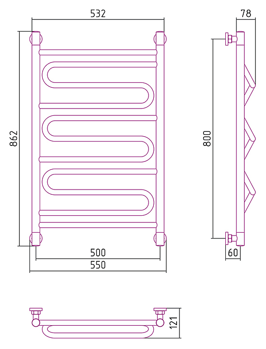 Полотенцесушитель водяной Сунержа Элегия+ 80x50 см белый
