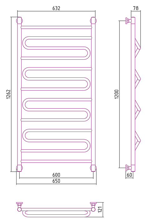 Полотенцесушитель водяной Сунержа Элегия+ 120x60 см белый
