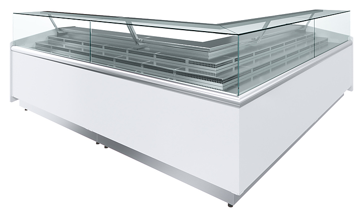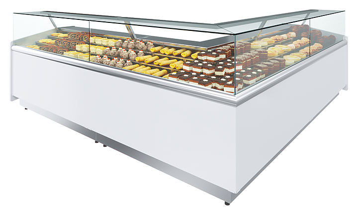 Угловая кондитерская витрина Carboma KC82 SM-5 01 используется на предприятиях общественного питания и торговли для демонстрации, охлаждения и кратковременного хранения тортов, пирожных и других кондитерских изделий. Модель оснащена прямым передним стеклом и регулируемыми ножками высотой от 30 до 50 м. Корпус выполнен из стали с ППУ-теплоизоляцией, зона выкладки и столешница - из нержавеющей стали, раздвижные задние створки - из оргстекла, передняя панель - из МДФ белого цвета или декорированного под дерево. В комплект поставки входят: