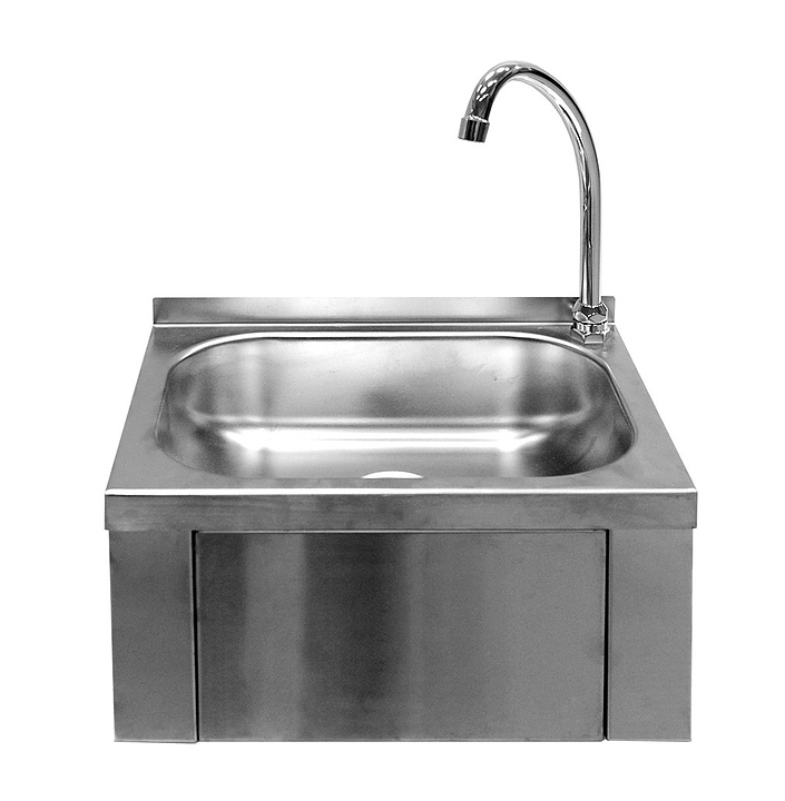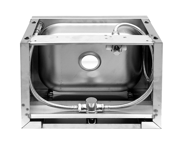 Рукомойник Gisp LP1R используется на предприятиях общественного питания и торговли. Модель оборудована коленным управлением. Рукомойник выполнен из нержавеющей стали AISI 304. В комплект поставки входит гусак, узел смешения. Дополнительные характеристики: