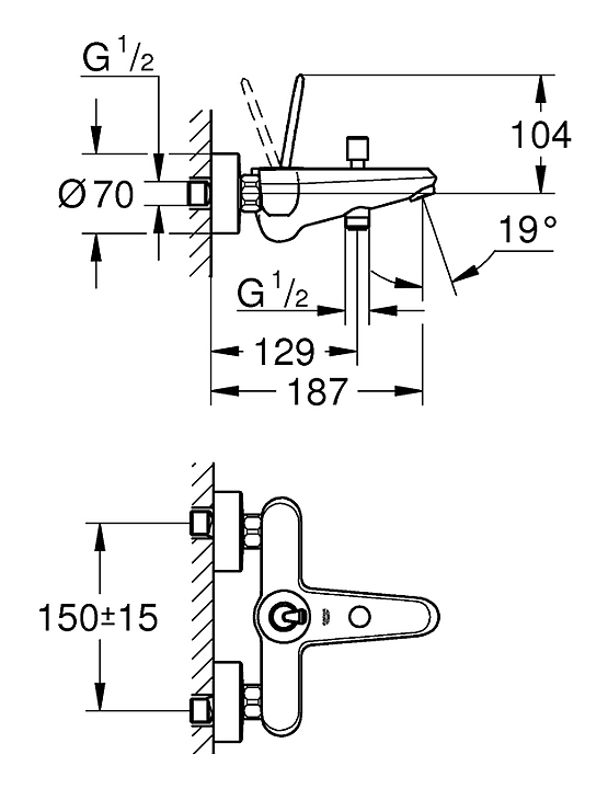 Смеситель для ванны Grohe Eurodisc Joy 23431000