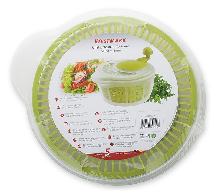 Сушка Westmark 2432224A используется на предприятиях общественного питания и торговли для сушки салатных листьев. Дополнительные характеристики: