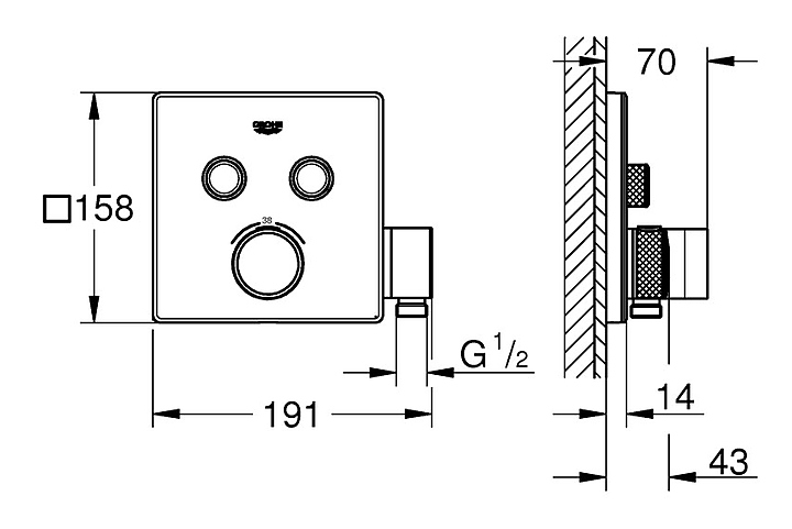 Смеситель для ванны Grohe Grohtherm SmartControl 29125000