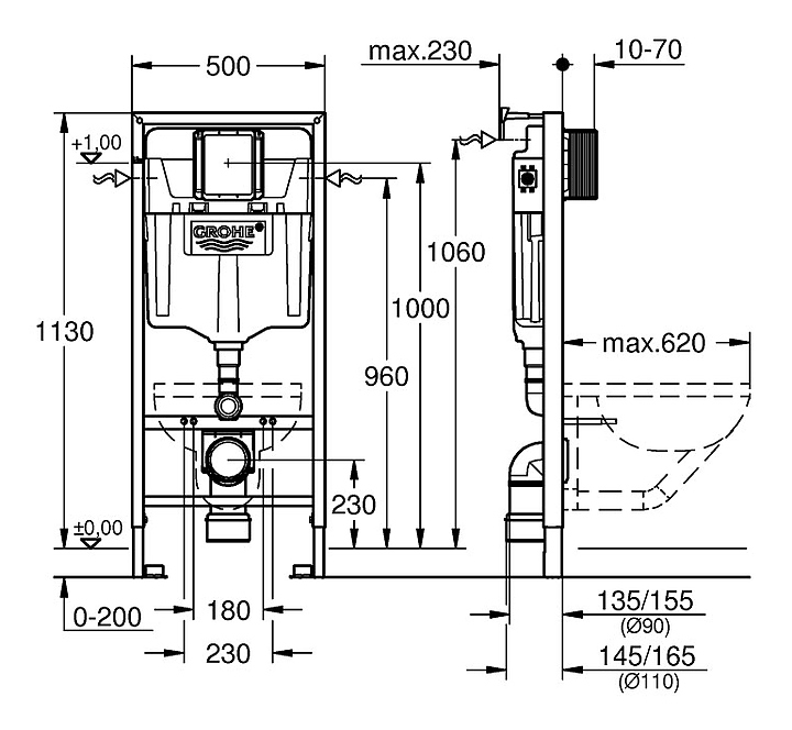 Система инсталляции для унитаза с бачком Grohe RAPID SL 38536001