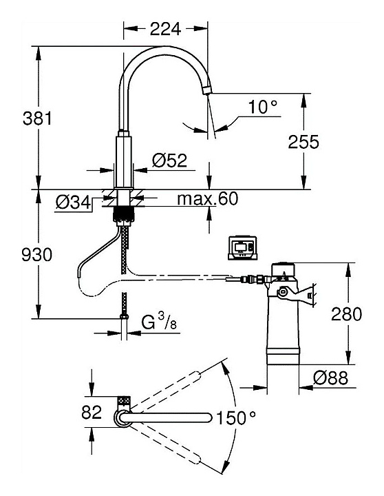 Кран для кухни Grohe Blue Pure Mono 30387000