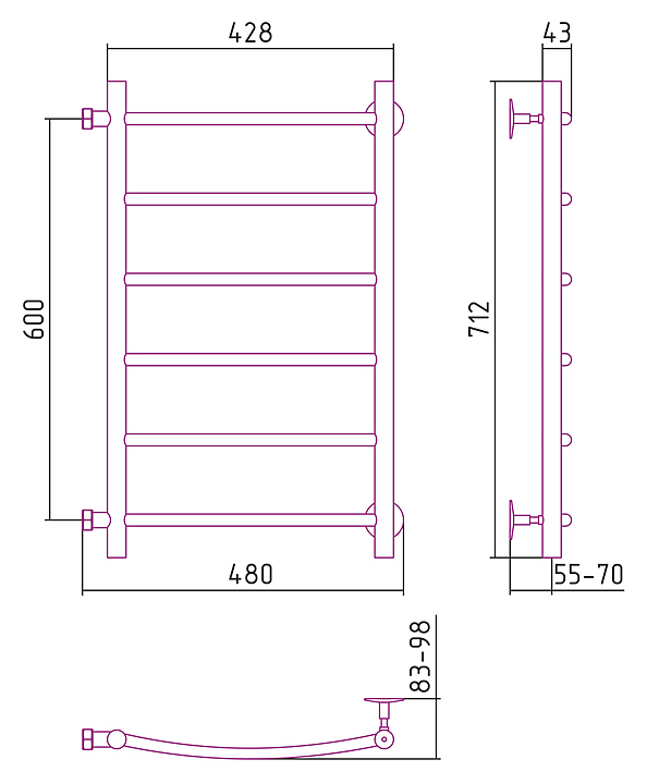 Полотенцесушитель водяной Стилье Версия-Б2 60х40 см без покрытия