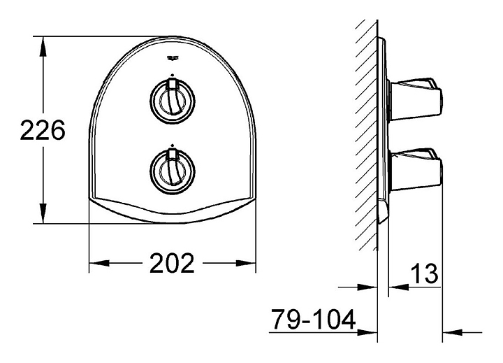Смеситель для душа Grohe Chiara New 19159RR0 предназначен для подачи горячей и холодной воды в ванных помещениях. Модель поддерживает постоянную температуру воды даже при изменении давления в трубах и обеспечивает поступление воды заданной температуры. Предохранительный стопор препятствует самопроизвольному включению воды с температурой выше 38°C, что исключает ожоги. В комплект поставки входят розетка и ручка. Скрытая монтажная часть в комплект поставки не входит и приобретается отдельно. Особенности: