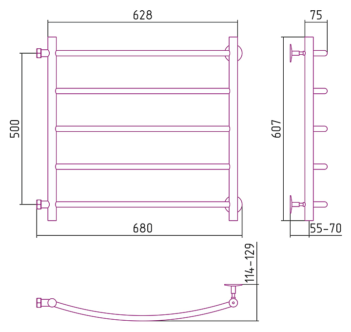 Полотенцесушитель водяной Стилье Версия-Б2 50х60 см без покрытия