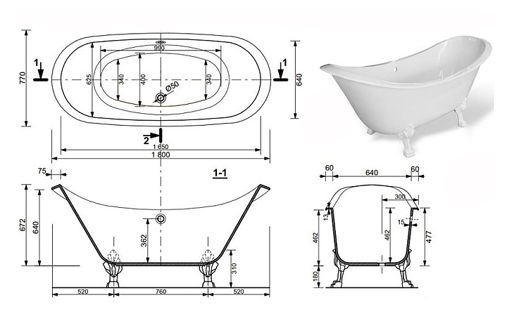 Ванна ЭСТЕТ Скарлетт 180 ФР-00001245 180х77 мм