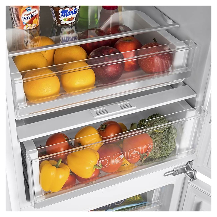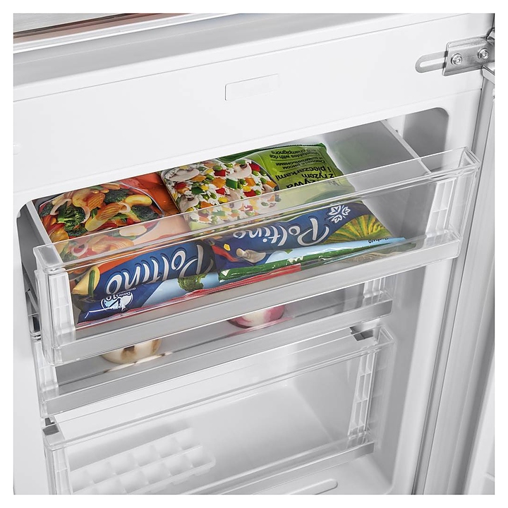 Встраиваемый холодильник Maunfeld MBF177NFWH предназначен для охлаждения и кратковременного хранения скоропортящихся продуктов, напитков и лекарств в частных домах, квартирах, отелях и офисах. Модель оснащена панелью управления с LCD-дисплеем и внутренней светодиодной подсветкой холодильной камеры. Корпус выполнен из металла, внутренняя часть - из антибактериального пластика. Особенности: