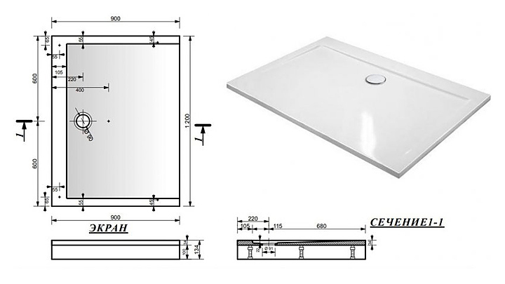 Поддон душевой ЭСТЕТ Каппа 120 ФР-00001131 120х90х3,4 см, литьевой мрамор