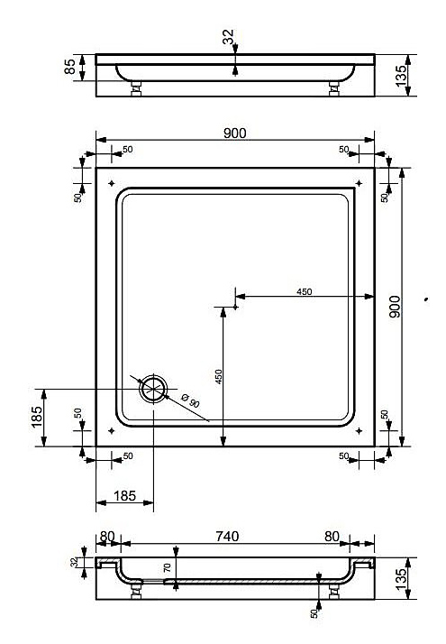Поддон душевой ЭСТЕТ Гамма М 90 ФР-00000755 90х90х8,5 см, литьевой мрамор