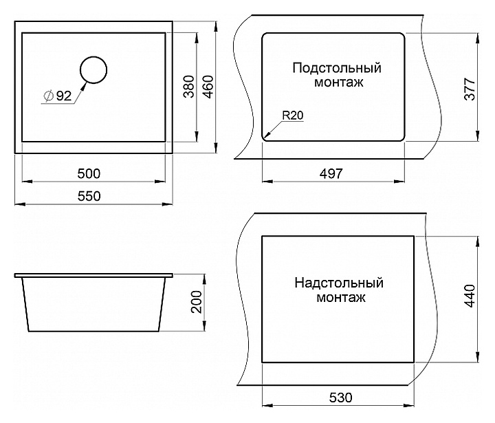 Кухонная мойка Granula GR-5551 предназначена для установки в частных домах, квартирах, офисах, отелях, гостиницах и на различных предприятиях для мытья столовых принадлежностей, посуды, приборов, инвентаря и продуктов питания. Изделие выполнено из кварца, который устойчив к образованию пятен и воздействию высоких температур. В комплект поставки входят сифон и комплект креплений. Особенности: