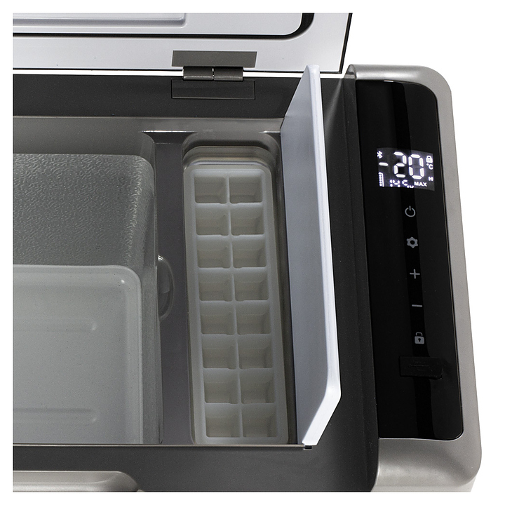 Переносной автохолодильник MEYVEL AF-E22 предназначен для охлаждения, глубокой заморозки, хранения и транспортировки продуктов питания и напитков в легковых и грузовых автомобилях, автодомах, специальной технике, лодках, катерах, яхтах, других видах транспорта и в быту. Модель оснащена отсеком для льда, откидной крышкой с интегрированной рукояткой и цепью для фиксации при открывании, сенсорной панелью управления с жидкокристаллическим дисплеем с высокими яркостью и разрешением. Внешняя облицовка корпуса выполнена из прочного пластика с текстурной нескользящей поверхностью, теплоизоляция – пенополиуретан высокой плотности, цепь – из нержавеющей стали. В комплект поставки входят кабель питания, форма для льда, инструкция по эксплуатации и гарантийный талон. Особенности: