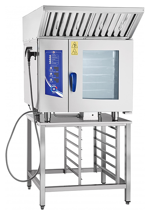 Пароконвектомат Abat ПКА 6-1/1ПМ2 предназначен для обжаривания, приготовления на пару, бланширования, запекания и других видов тепловой обработки продуктов на предприятиях общественного питания и торговли. Оборудование заменяет сразу несколько видов приборов: плиту, конвекционную печь, жарочный шкаф, духовку, опрокидывающуюся сковороду, пищеварочный котел, фритюрницу и др. Приготовленные в пароконвектомате блюда сохраняют все полезные вещества. Модель оснащена подсветкой, легкосъемным жировым фильтром, душем для мойки и дверью с двойным остеклением. Лицевые панели облицовки выполнены из нержавеющей стали, крыша, боковые и задние панели -из окрашенного металла. Пароконвектомат используется совместно с вытяжным зонтом Abat ЗВВ-800. Рекомендуется дополнительно приобрести водоумягчитель и фильтр-систему для очистки и смягчения воды. Подробнее о необходимости водоподготовки читайте здесь. Особенности: