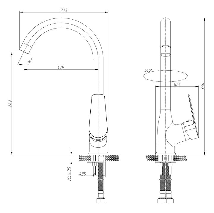 Смеситель для раковины Rossinka S35-23 предназначен для подачи горячей и холодной воды в кухонных помещениях. Модель оснащена керамическим картриджем, обеспечивающим плавный ход рычага смесителя, контроль и точность при выборе напора и температуры воды. Пластиковый аэратор экономит расход воды, уменьшает шум, снижает количество брызг и отличается легкой очисткой. Изделие выполнено из латуни, отличающейся прочностью, долговечностью и устойчивостью к перепадам температур. В комплект поставки входят 2 подводки. Особенности: