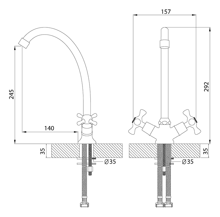 Смеситель для раковины Rossinka H02-71 предназначен для подачи горячей и холодной воды в кухонных помещениях. Модель оснащена керамическими вентильными головками. Пластиковый аэратор экономит расход воды, уменьшает шум, снижает количество брызг и отличается легкой очисткой. Изделие выполнено из латуни, отличающейся прочностью, долговечностью и устойчивостью к перепадам температур. В комплект поставки входят 2 подводки. Особенности: