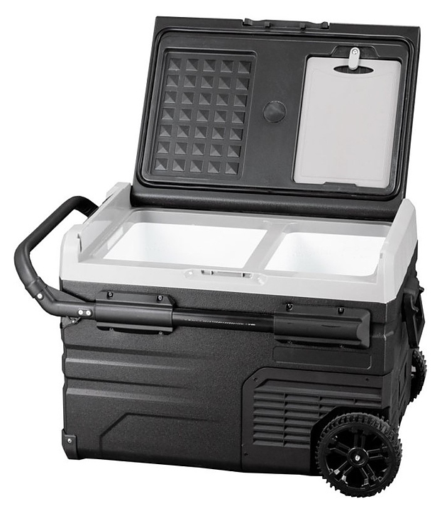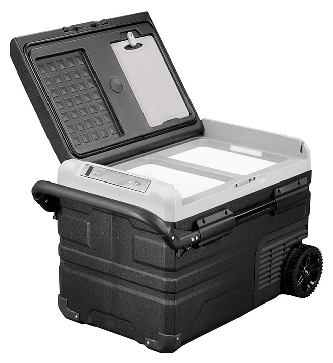 Переносной автохолодильник Alpicool TWW35 предназначен для охлаждения и глубокой заморозки, хранения и транспортировки продуктов питания и напитков в легковых и грузовых автомобилях, автодомах, специальной технике, лодках, катерах, яхтах, других видах транспорта. Модель оснащена 2 независимыми камерами, электронным термостатом, разъёмом USB, светодиодным внутренним освещением, 2 корзинами для продуктов, 2 колесами и телескопической ручкой. Корпус выполнен из пластика, теплоизоляция - из полиуретановой пены высокой плотности. Особенности: