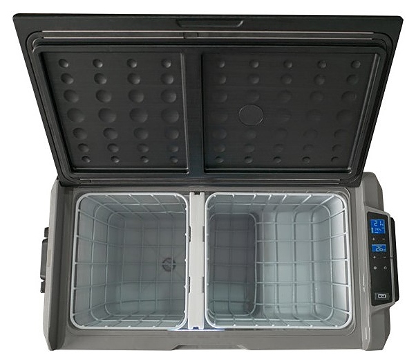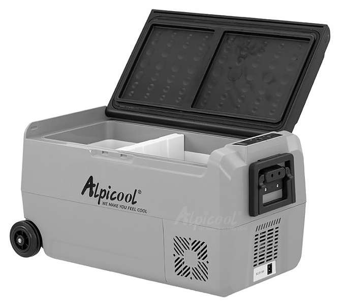 Переносной автохолодильник Alpicool T36 предназначен для охлаждения и глубокой заморозки, хранения и транспортировки продуктов питания и напитков в легковых и грузовых автомобилях, автодомах, специальной технике, лодках, катерах, яхтах, других видах транспорта. Модель оснащена 2 независимыми камерами, 2 дисплеями повышенной яркости, разъёмом USB, светодиодным внутренним освещением, 2 корзинами для продуктов, 2 колесами, телескопической ручкой и 2 ручками для переноса. Корпус выполнен из пластика, теплоизоляция - из полиуретановой пены высокой плотности. В комплект поставки входит сетевой адаптер. Особенности: