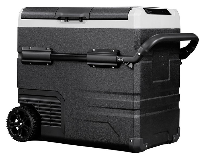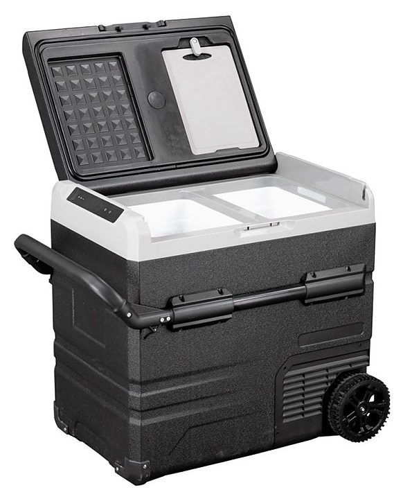 Переносной автохолодильник Alpicool TWW55 предназначен для охлаждения и глубокой заморозки, хранения и транспортировки продуктов питания и напитков в легковых и грузовых автомобилях, автодомах, специальной технике, лодках, катерах, яхтах, других видах транспорта. Модель оснащена 2 независимыми камерами, электронным термостатом, разъёмом USB, светодиодным внутренним освещением, 2 корзинами для продуктов, 2 колесами и телескопической ручкой. Корпус выполнен из пластика, теплоизоляция - из полиуретановой пены высокой плотности. Особенности: