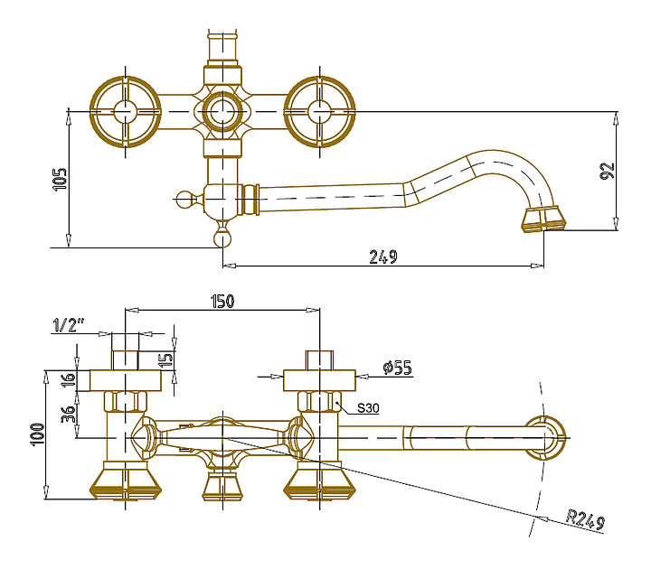Стойка душевая Bronze de Luxe Royal 10121DF/1 верхний душ цветок, излив длинный