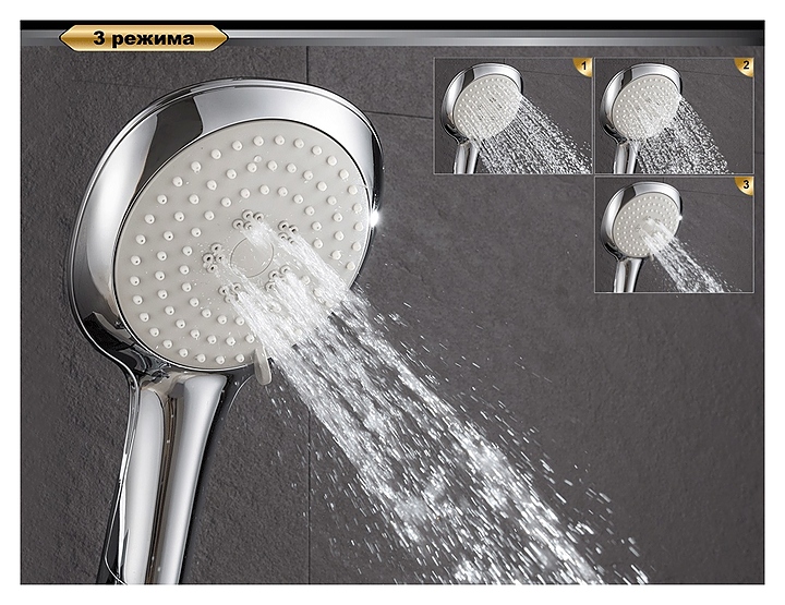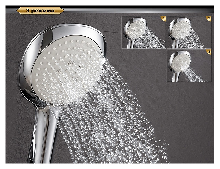 Смеситель D&K Berlin Freie DA1433101 предназначен для использования в душевых комнатах для подачи горячей и холодной воды. Модель оснащена трехрежимной ручной лейкой и душевым шлангом, а также керамическим картриджем, обеспечивающим плавный ход рычага смесителя, контроль и точность при выборе напора и температуры воды. Изделие выполнено из высококачественной латуни, отличающейся прочностью, долговечностью и устойчивостью к перепадам температур. В комплект поставки входят cмеситель, эксцентрики, декоративная шайба (отражатель), шланг душевой, лейка душевая и держатель душевой лейки. Особенности: