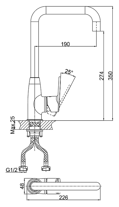 Смеситель D&K Rhein Speyer DA1312441 предназначен для использования в кухонных помещениях для подачи горячей и холодной воды. Модель оснащена высоким поворотным изливом, керамическим картриджем, обеспечивающим плавный ход рычага смесителя, контроль и точность при выборе напора и температуры воды, а также аэратором для создания мягкой ровной струи без разбрызгивания. Изделие выполнено из высококачественной латуни, отличающейся прочностью, долговечностью и устойчивостью к перепадам температур. В комплект поставки входят cмеситель, гибкая подводка и крепежные гайки. Особенности: